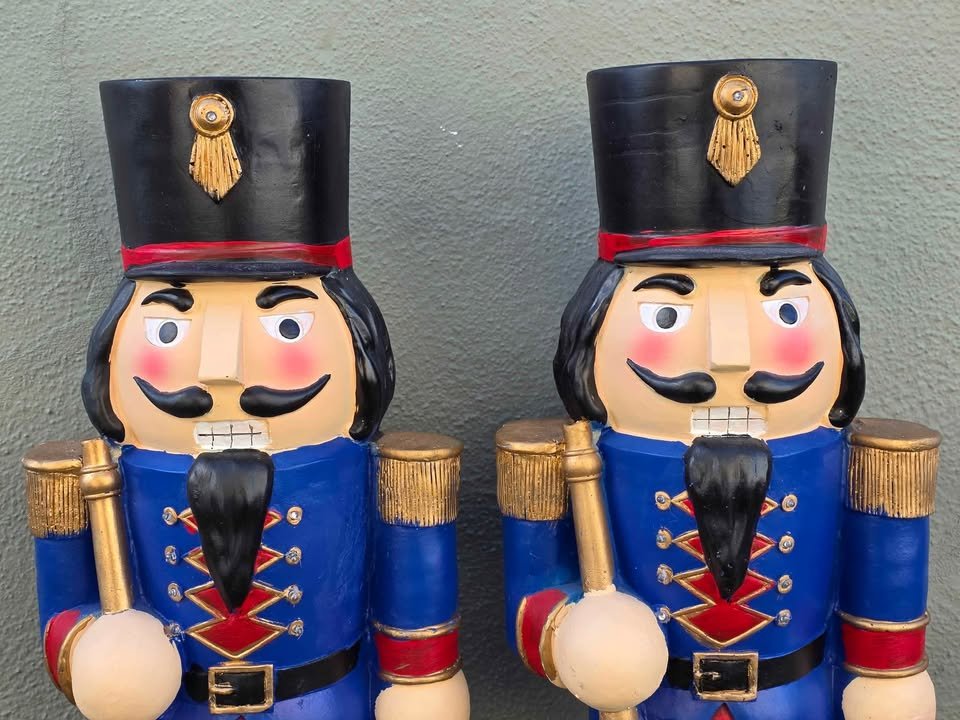 Standing tall in festive splendor, this large illuminated nutcracker radiates timeless charm and classic elegance. Brilliantly lit in a vibrant combination of red, blue, and warm white LEDs, it captures the spirit of holiday tradition with a bold, regal presence. Crafted for durability and built to withstand the elements, this dazzling figure is both striking and resilient—perfect for making a joyful, lasting impression indoors or out.